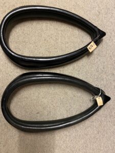 Unter dem Wert abzugeben: 2 neuwertige, handgefertigte englisch Kummete inkl. Kummetbügel aus der Sattlerei Spirig in St. Gallen. Grössen siehe Bilder. Preis zusammen Fr. 600.-