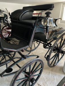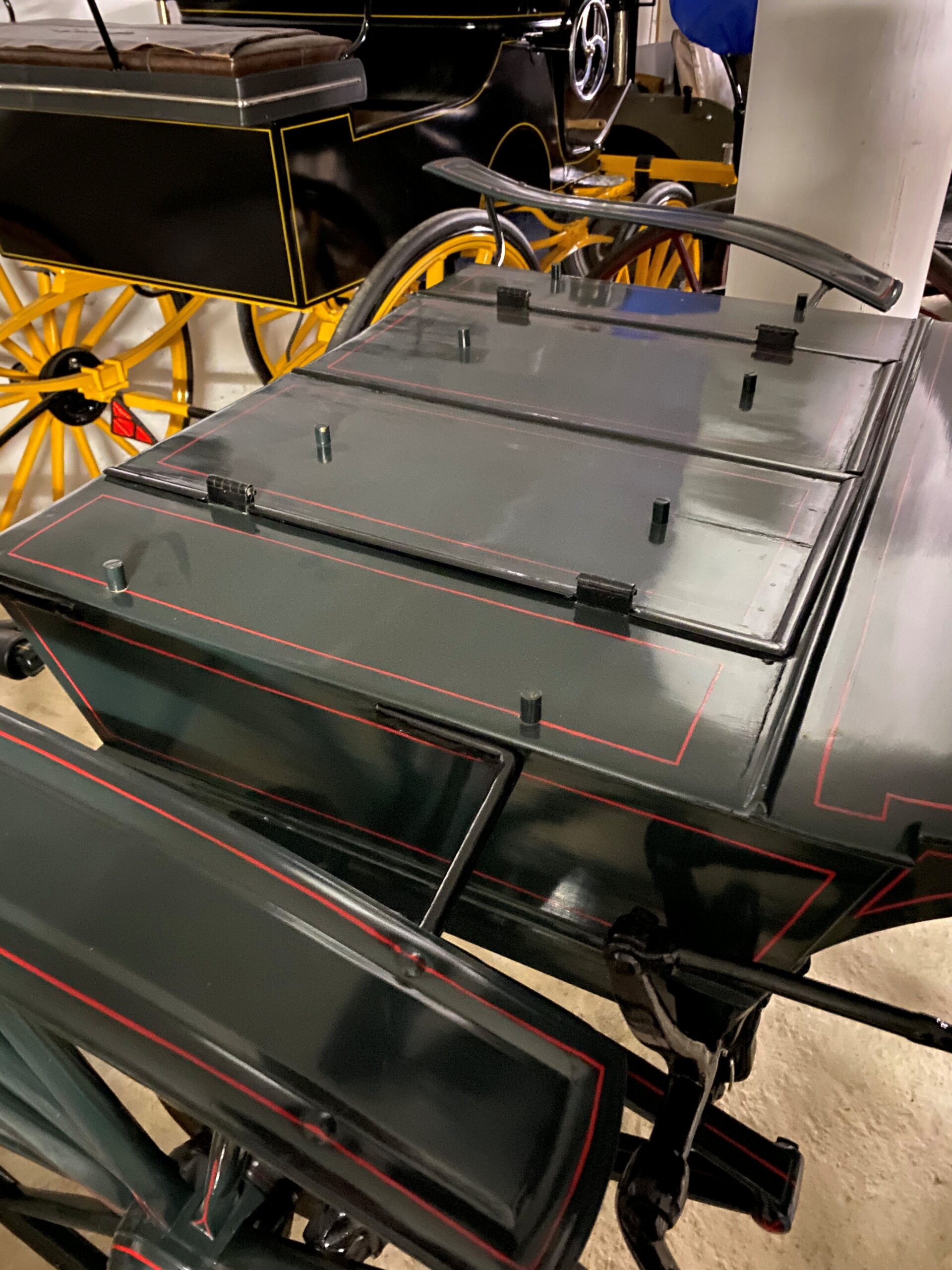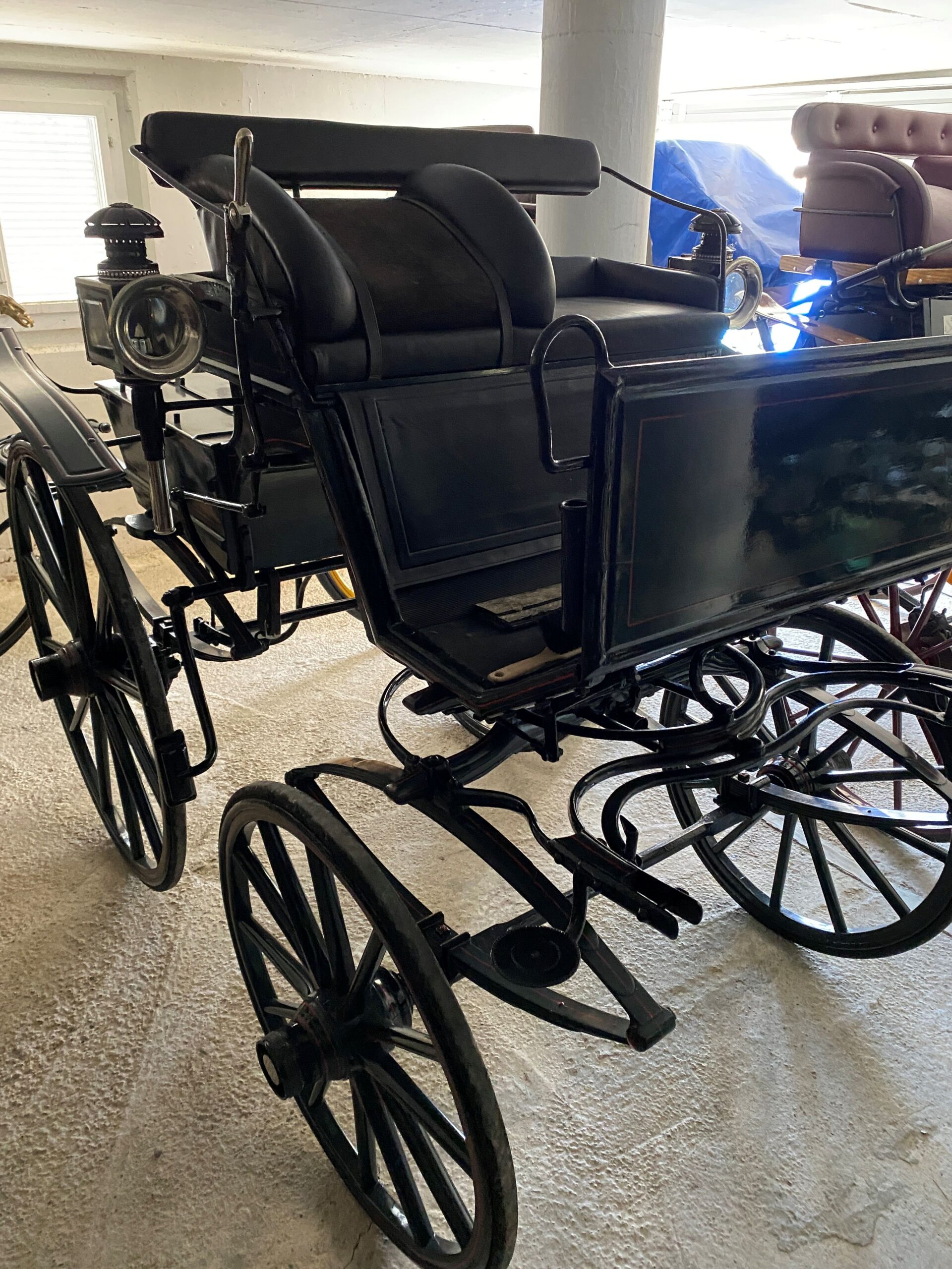 1 Paar antike, schwere Kutschenlampen für 2-Räder oder leichtere Kutschen. Innen sowie aussen alles versilbert. Signiert mit: C. A. B. COACH BUILDERS, LINCOLN. Seitengläser 11cm x 15cm. Front 11 cm x 15cm. Gesamthöhe 45cm. Preis Fr. 350.-
