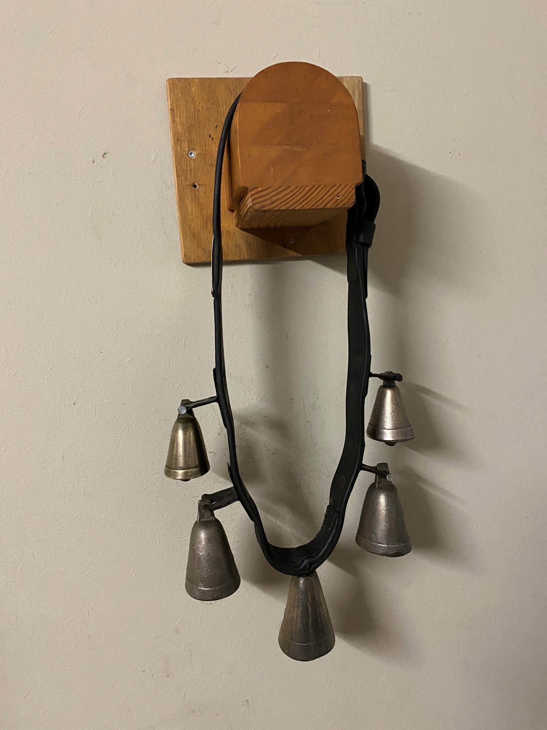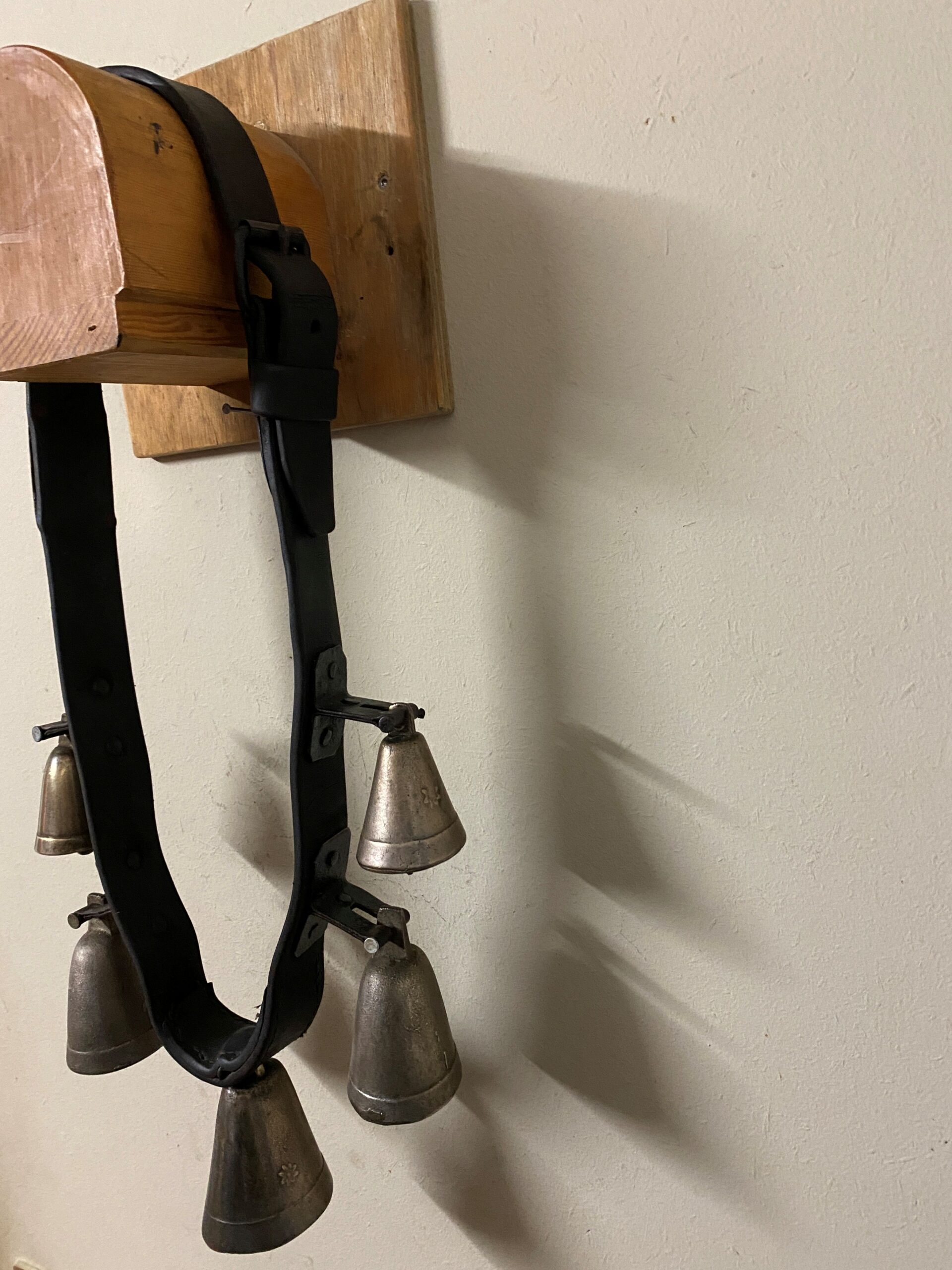 Antikes Halsgeschel mit 5 gleichen Glocken von GEBR. GUYER ST. GALLEN. ( Ev. ehemalige Fuhrhalter oder Sattler) Preis Fr. 120.-