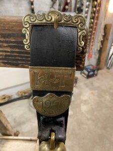 Antikes, schweres Halsgeschell mit beeindruckenden Klang abzugeben. Hergestellt von der Sattlerei Maier in Gais AR mit sehr schönen Messingbeschlägen. Preis Fr. 170.-