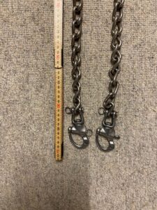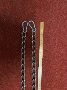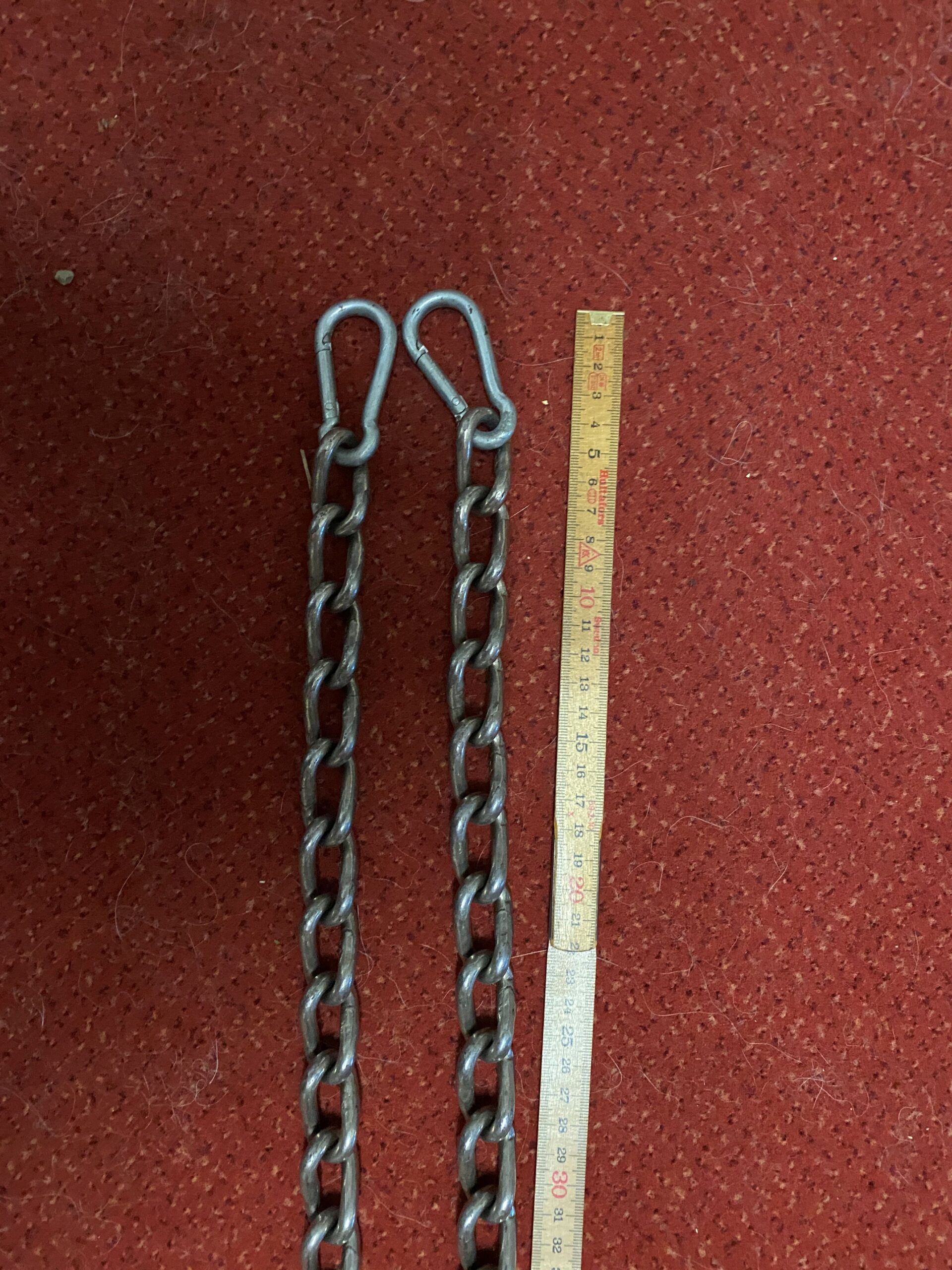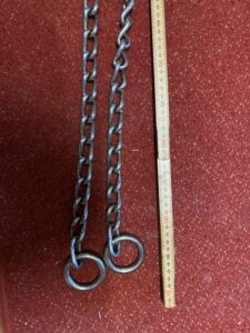 1 Paar schwere, massive Deichselketten mit einer Länge von ca. 95 cm. Wahlweise mit Schnellverschlüssen oder Karabinerhacken zu gebrauchen. Preis Fr. 70.-