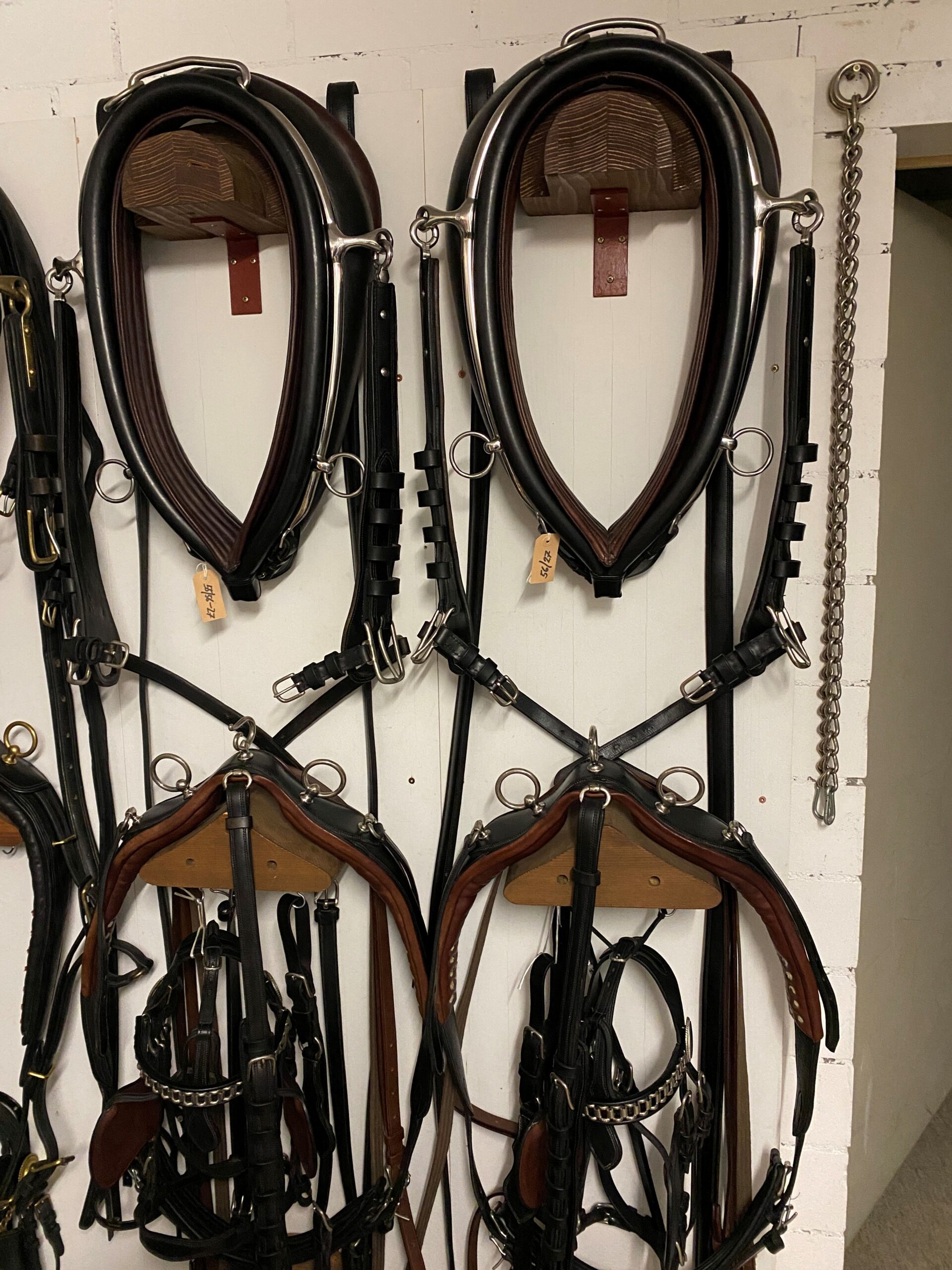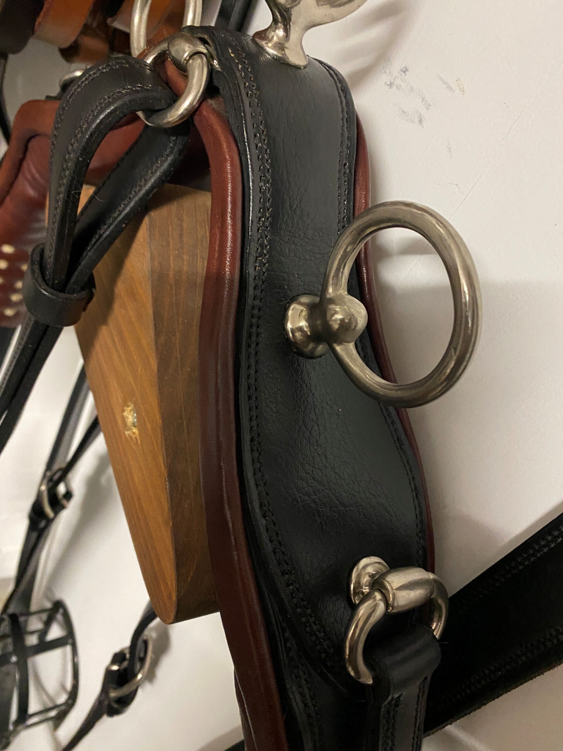 1 Paar neuwertige ( nur 1x getragen ) englisch Kummetgeschirre in Turnierqualität. Solide Handwerksarbeit und gutes Leder, Kummetgrössen 56×27. Inkl. 2x Leder-Unterkummet, Leine und Kopfstücke. Besichtigung und weitere Auskünfte gerne auf Anfrage. Preis Fr. 2000.-